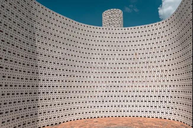 蟻工房位于建水縣臨安鎮(zhèn),占地約1.5萬平方米。整體結(jié)構(gòu)為使用空心磚搭建起一個個酷似螞蟻巢穴的建筑,形成了十分有趣的外觀。