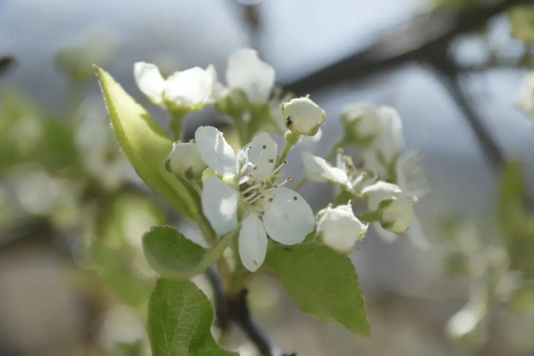 遠遠望去,田野村莊一片片銀白,大有“放眼疑似白云落”的境界。走進梨園,花香撲鼻,一株株造型各異的梨樹上綴滿了一簇簇耀眼的白花,如同無數的玉粉蝶從天空飛落枝頭。微風拂過,花瓣飄落如雪紛飛,形成了“風來忽見梨花雨”的壯觀景致,讓人流連忘返。