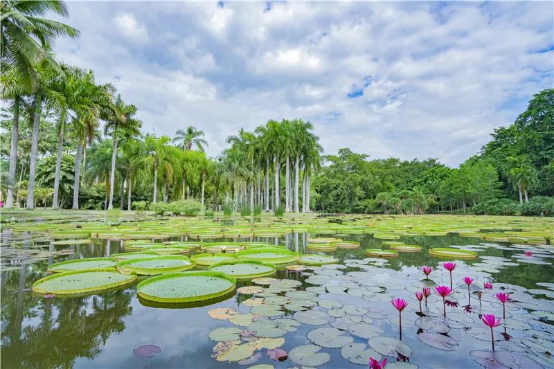 走進園內,上千種來自世界各地的熱帶植物在這里自由生長,它們分植在百花園、百香園、百果園、奇花異卉園、榕樹園、水生植物園、蔭生植物園、國樹國花園等十多個園子中。