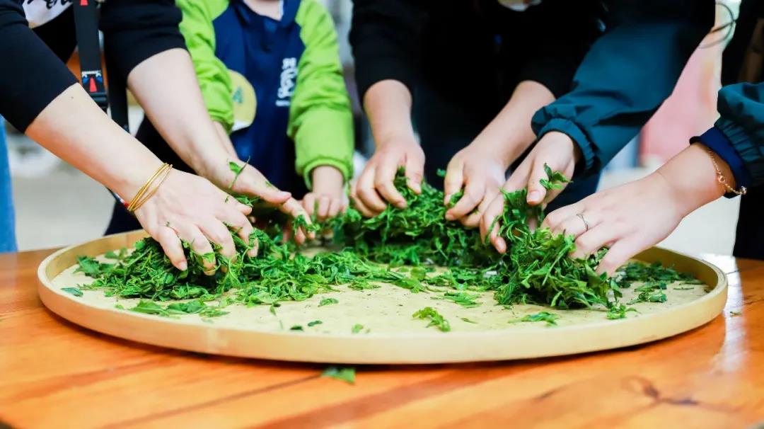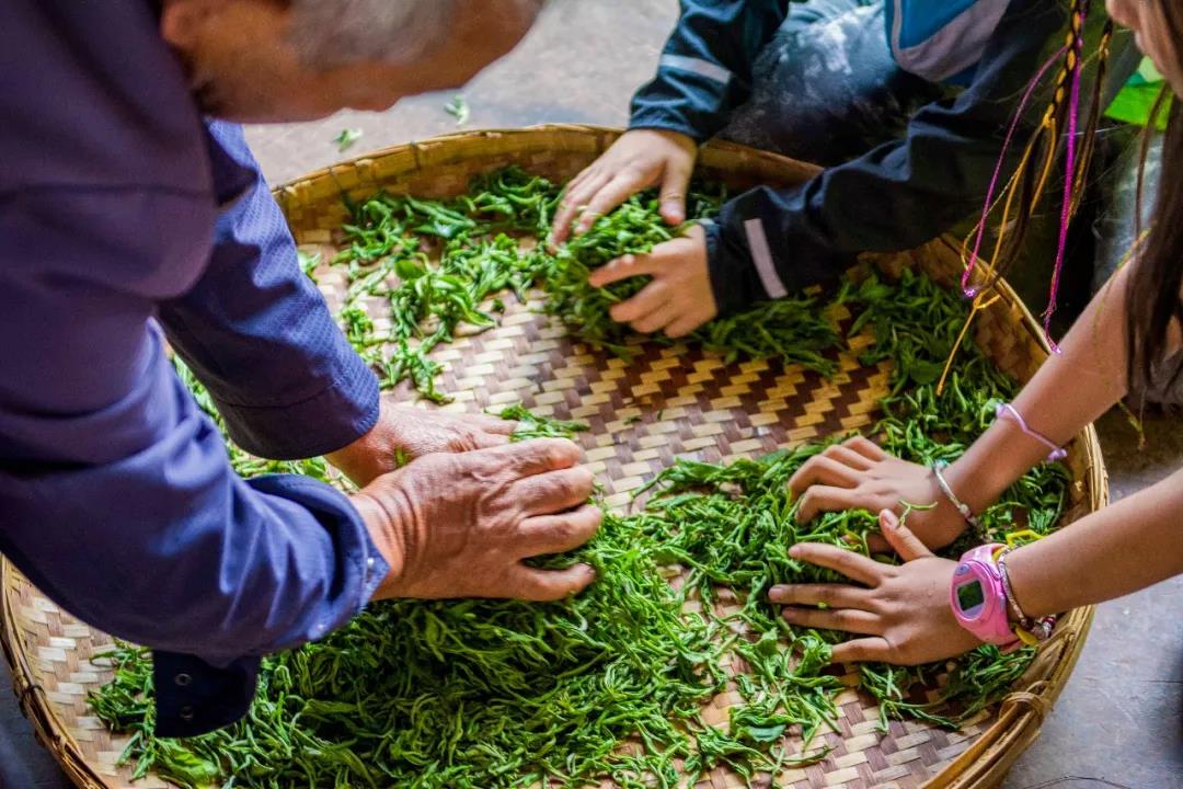 與孩子們一同向非遺傳承人學(xué)習(xí)制茶方法
