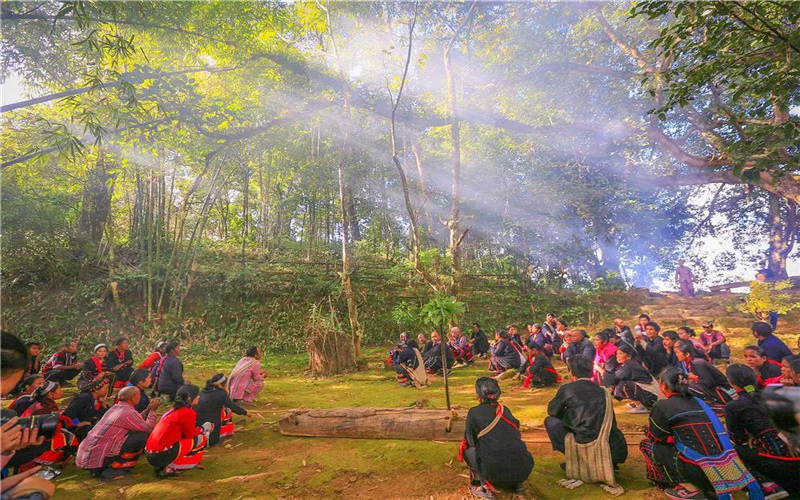 佤族村寨都有一片神林,并把其中的一棵古老的大樹作為寨神或樹神的居所。翁丁寨的神林就在村子的左邊,里面還有一個祭祀房,逢年過節(jié)或全村有什么大事都要到那里搞祭祀活動,乞求鬼神保佑全村平安健康、五谷豐登、人畜興旺等。神林里的樹從沒人亂砍,因而現(xiàn)在長得非常茂盛。此外,佤族還有一個優(yōu)良的傳統(tǒng),那就是人死了以后實行土葬,不留墳?zāi)?,所以說,到下次埋人的時候有可能挖到舊墓,這時你只要把墓穴中的骨頭先揀起,等墓穴完全挖好后再將骨頭置于墓穴底,或放在墓穴外即可,絕不會有人說你亂動祖墳與你理論,這也是佤族節(jié)約土地資源的一大貢獻(xiàn)。人死了,家里只能存放一天,然后就去安葬,每10天供一次飯,連續(xù)3次,3次以后也就是30天以后不再認(rèn)墳,這種風(fēng)俗習(xí)慣一直延續(xù)到今天。