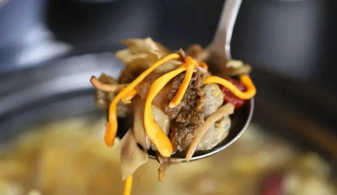 野生菌火鍋的鍋底多種多樣,一般有烏雞,放枸杞、大棗和蟲草花,也有放魚的蒸汽石鍋火鍋。這些鍋都有一個特點(diǎn),那就是看起來很養(yǎng)生!