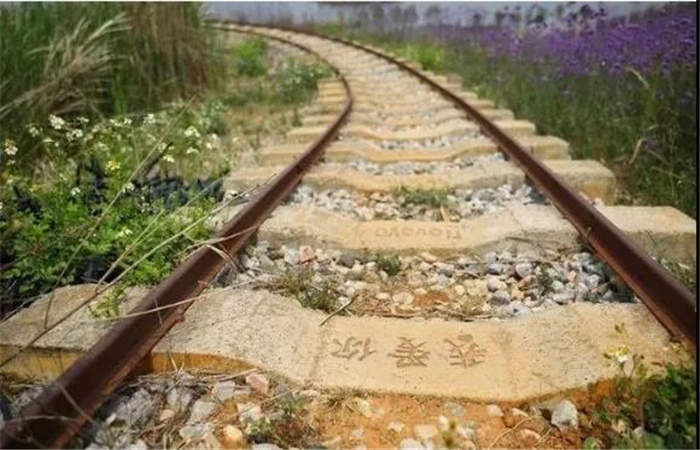 景區(qū)大片的馬鞭草花田里還有一條條浪漫的鐵軌,每一塊石基上都有不同文字印刻的我愛你,于是這里變成了一條愛情鐵路。