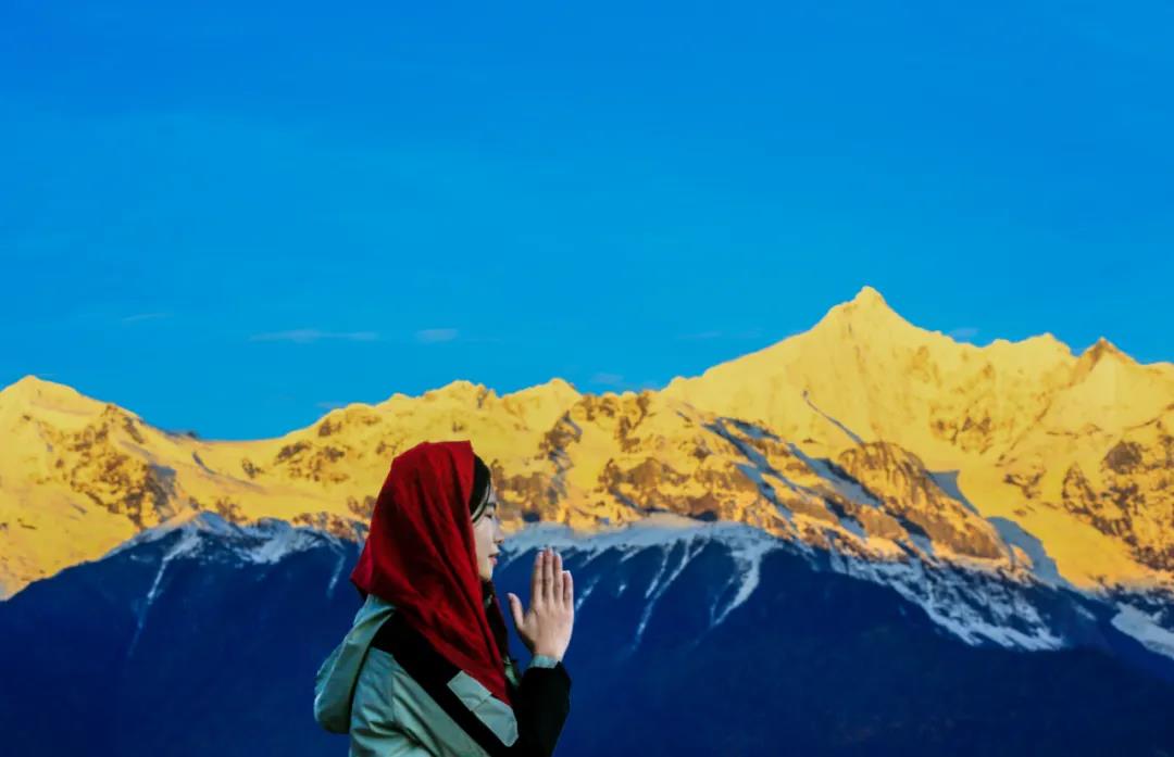 都說(shuō)見過(guò)梅里雪山日照金山的人,會(huì)幸運(yùn)一整年,所以很多心中有信仰的人會(huì)不遠(yuǎn)萬(wàn)里到此朝圣。藏民們都認(rèn)為,能夠得見梅里真容并遇見日照金山,就代表卡瓦格博神接納了你,那么你就會(huì)擁有一整年的幸運(yùn)。