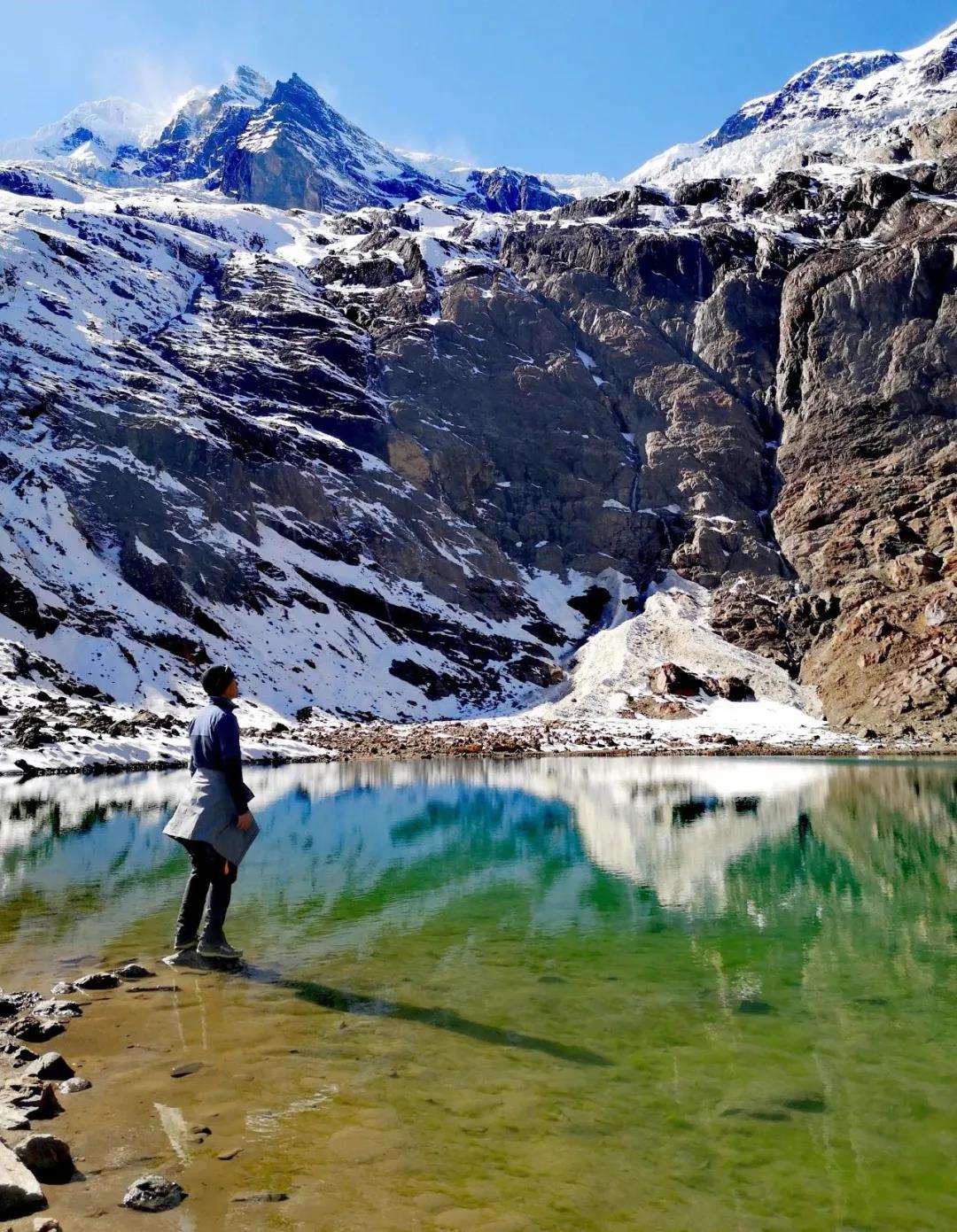 雨崩村的5月和6月是挖蟲草的季節(jié),7月8月收松茸,9月10月收葡萄核桃。雨崩的冰湖,更加翠綠,宛如一個(gè)翠綠的寶石鑲嵌在雪山之間。冰湖是梅里雪山冰川融化的雪水,匯集而成形成的深綠的海子,也是梅里雪山的圣湖。