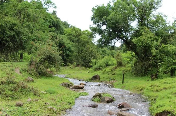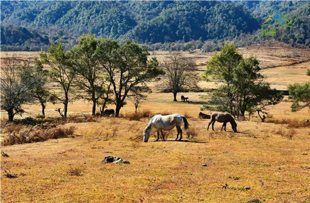 四周群山環(huán)抱,草甸上悠閑的牛馬嬉戲打鬧,造型奇幻的大樹間有條清澈的小河潺潺流過,猶如世外桃源般,是令人神往的“滇西香格里拉”。