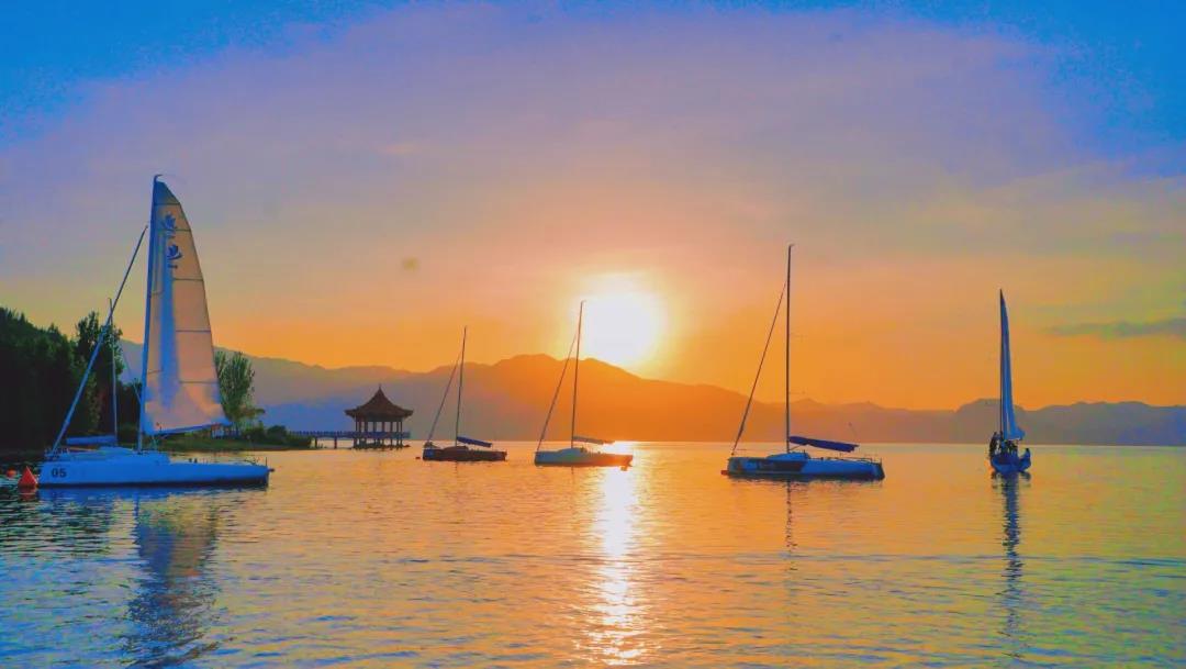 帆船:乘風(fēng)破浪暮看湖景