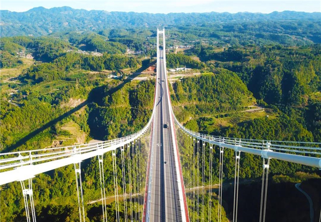 站在觀景臺上向上望,大橋在云霧中伸向前方,又消失在前方對岸的霧海中,像是一條在云霧中飛騰的神龍,見首不見尾,是自駕時(shí)不可錯(cuò)過的震撼打卡地。