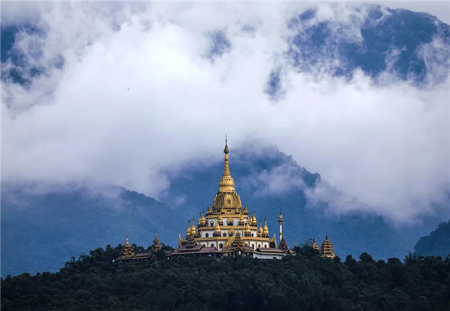 來到芒市一定要來勐煥大金塔。它有著耀眼的金色和巨大的建筑規(guī)模,醒目地佇立在芒市雷牙讓山的山頂。