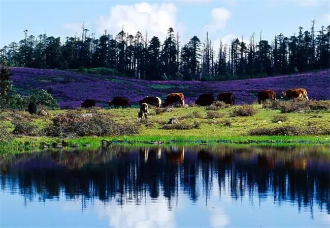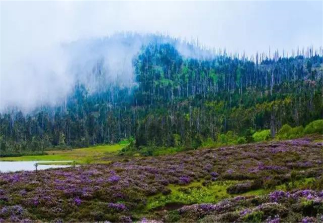 千湖山周圍被原始森林所覆蓋,多為高大筆直的冷杉、云杉。湖畔長(zhǎng)滿了杜鵑林,這里的杜鵑花花冠碩大,色澤鮮艷,盛開之時(shí)煞是好看。