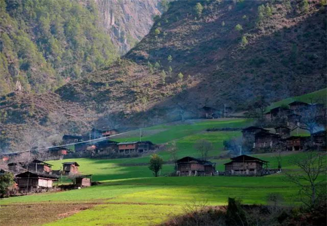 坎桶村這里江面海拔1710余米,風(fēng)光綺麗,構(gòu)成三面環(huán)水的半島狀小平原。