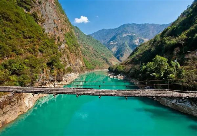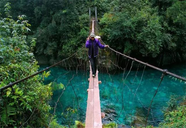 因?yàn)榱锼魑kU(xiǎn)性較高,現(xiàn)在也修建了吊橋。走在驚險(xiǎn)的吊橋上,你可能會(huì)為他們捏把汗,但這卻是當(dāng)?shù)厝俗钇匠R彩亲钪匾慕煌ǚ绞健?