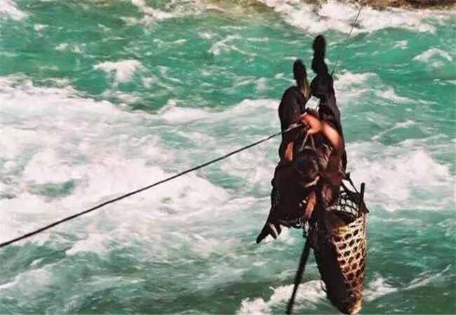 行走在怒江大峽谷的路上,常常可以看到一根根繩索橫貫兩岸,人們憑借著它,跨過(guò)怒江天險(xiǎn),這就是“怒江天橋”——溜索。