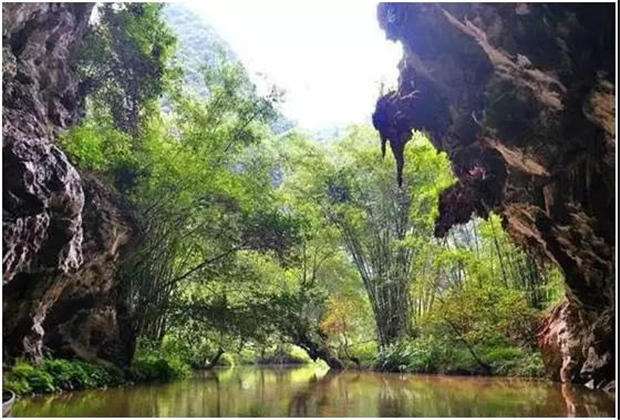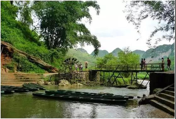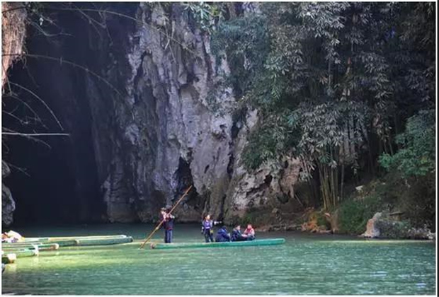 湯 那 洞,壩美村四面環(huán)山,不通公路,進(jìn)出靠水路,村民們要撐竹筏,搖豬槽船,摸著巖壁過(guò)河。這幽暗的水洞一前一后,被稱之為湯那洞,是天然的石灰熔巖水洞。