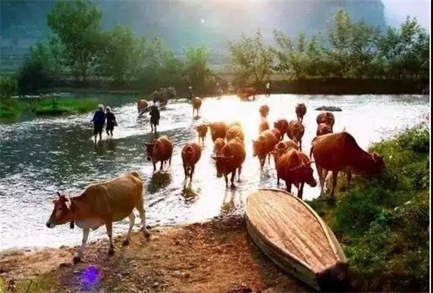 而這時(shí)奇跡出現(xiàn)了,河中央傳來(lái)甜美的歌聲,一位壯族姑娘搖著豬槽船來(lái)到了他們面前,渡他們過(guò)河。從此,馱娘江變成了一條清淺的小河。