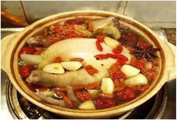 岜 夯 雞,岜夯就是用紅青菜或野菜制作的一種酸菜湯。將紅青菜工(或野菜)洗凈、晾干,放入米湯內(nèi)泡三至五日,其湯即為有酸味的紅色湯汁。這樣的酸菜湯配上雞肉片,鮮香無(wú)比。