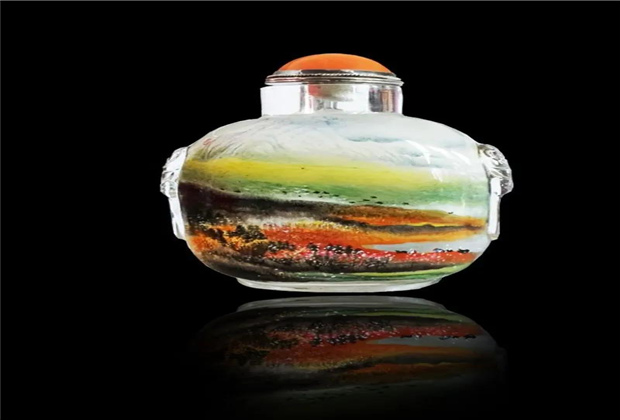內(nèi)畫出現(xiàn)于清代,是我國特有的傳統(tǒng)工藝,素以“寸幅之地具千里之勢”著稱,起源于畫鼻煙壺,它是以特制的細筆,伸入玻璃、水晶、琥珀等材質(zhì)的壺內(nèi)反向作畫?,F(xiàn)代內(nèi)畫技藝有京、冀、魯、粵、秦等流派。