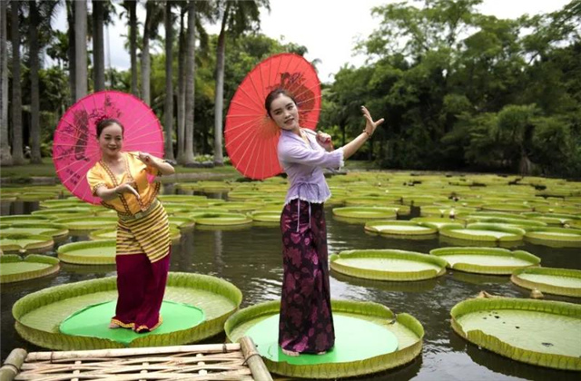 西雙版納植物園于今年7月培植出直徑直逼2米的王蓮葉片,葉片上甚至可以承載體重最高達70公斤的成年人,孩童就更不在話下了。王蓮又稱女王的蓮花,具備三變的特性:開花第一晚白色雌花會提升周圍環(huán)境溫度來吸引昆蟲傳粉。次日早上,花朵閉合,雌花轉(zhuǎn)性成雄花,花藥也慢慢成熟。再到第二天傍晚,王蓮會再次綻放,此時花色呈現(xiàn)粉紅色或洋紅色,花朵就由白變紅了。王蓮果實種子極多,有的可達300-400顆,最多的可達700顆。
