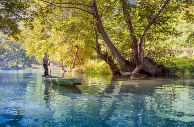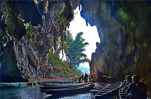 坐上小船進(jìn)入洞中,洞外嘈雜的人聲、水流聲會(huì)完全消失,只有小船輕輕劃過水面的音律和鐘乳石水滴滴落水面的聲息。
