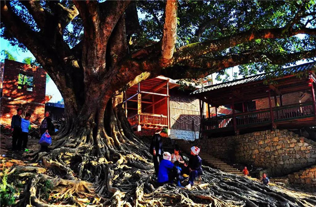 村落中有幾棵大榕樹,沒有人知道它經(jīng)歷了多少年月風(fēng)霜的洗禮,就這樣開枝散葉,盤根錯(cuò)節(jié),傾聽了無(wú)數(shù)壩美人的家長(zhǎng)里短,歷史傳說(shuō),見證著這里的一朝一夕。