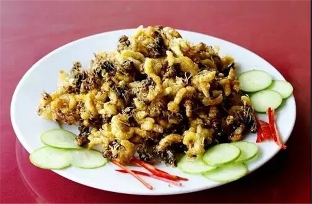 油炸蜂蛹蛋白質(zhì)較高、營(yíng)養(yǎng)極為豐富,而且噴香可口,是難得遇到的云南佳肴。一口下去嘎嘣脆,不僅營(yíng)養(yǎng)豐富,口感也十分爽。每年都有外省游客來(lái)云南感受油炸蠶蛹、油炸螞蚱等美食。