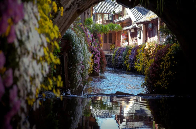 麗江古城內(nèi)絢麗的秋菊,很好地詮釋了這句詩。下面就跟隨云南傳媒公司小編去看看詩一般的古城。