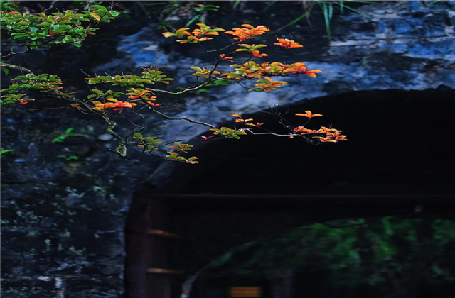 爬山虎那熱烈的紅色,是古鎮(zhèn)里掩蓋不了的秋意。