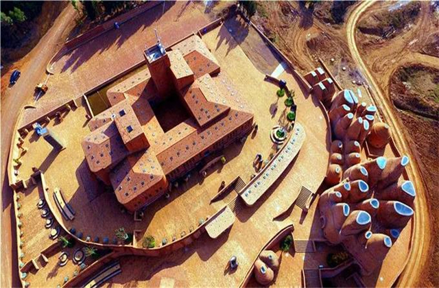 建筑師將萬花筒的棱鏡理念運(yùn)用到了建筑之中,整個(gè)酒瓶罐子一樣的建筑少見窗子,取而代之的是一些形似棱鏡的三角墻洞,毫無規(guī)則地將陽光引入這個(gè)建筑之中,隨著每日的日照變化,館內(nèi)的光線也呈現(xiàn)出不同光景。
