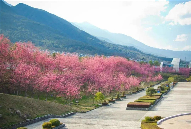 除了山間,在大理城內(nèi),櫻花雖然會來得稍晚,但同樣也是花開遍地,高校里,城墻邊,馬路旁,隨便一個轉(zhuǎn)身,都能邂逅那份粉色。