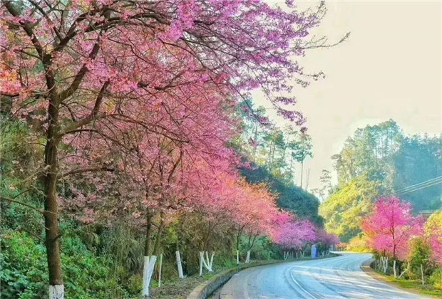 在文山廣南,冬櫻花迎來了盛花期,將整條道路染成粉色,粉嫩的櫻花在微風(fēng)中輕輕搖擺,碧空萬里配上櫻花粉,驚艷著每個路過的人。