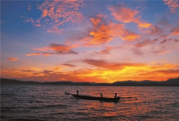 冬日時分在陽光下更顯波光粼粼,最不能錯過它那五顏六色的豬槽船,劃過水面,蕩出一片片漣漪,如詩如畫,萬千思緒都沉醉在那抹蔚藍(lán)中。