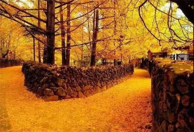 漫步村中小巷,不經(jīng)意間,銀杏葉灑滿一身。