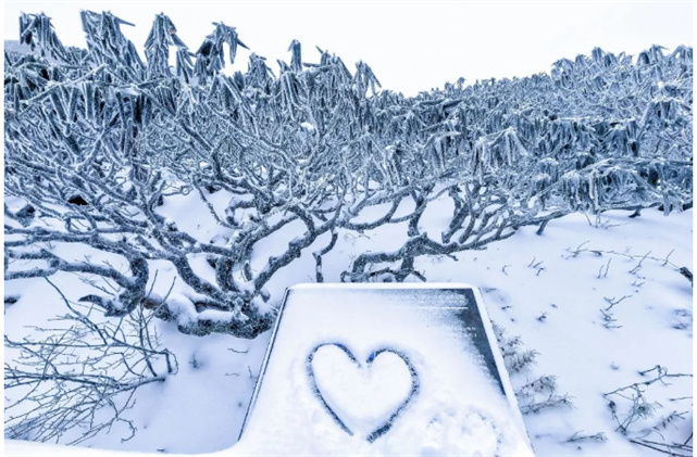 “小雪封山,大雪封河”,太極頂上,雪花給群山換上銀裝,世界沉浸在一片銀白色里。