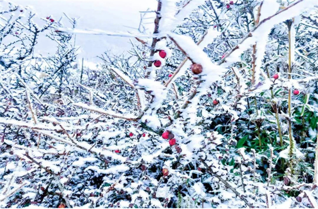 “青山原不老,為雪白頭?!备采w在枝葉上的白雪在清晨陽(yáng)光的照射下更顯晶瑩透亮,銀裝素裹的世界,緩緩到來(lái)!