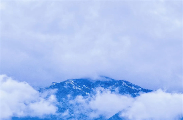 冬日的雞足山,更顯莊嚴(yán)神圣,卻又多了幾分靈動(dòng)。仿佛只需一夜,雪花便能灑滿(mǎn)大地,雞足山變成一片銀白。飄落的雪花掛滿(mǎn)枝頭、散落在
