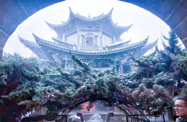 下雪時(shí),太極圖呈現(xiàn)出了不一樣的色彩。站在太極觀(guān)景臺(tái),就可攬盡太極風(fēng)光,云霧環(huán)繞中,朦朧雪色下,一次邂逅就足以驚艷余生。