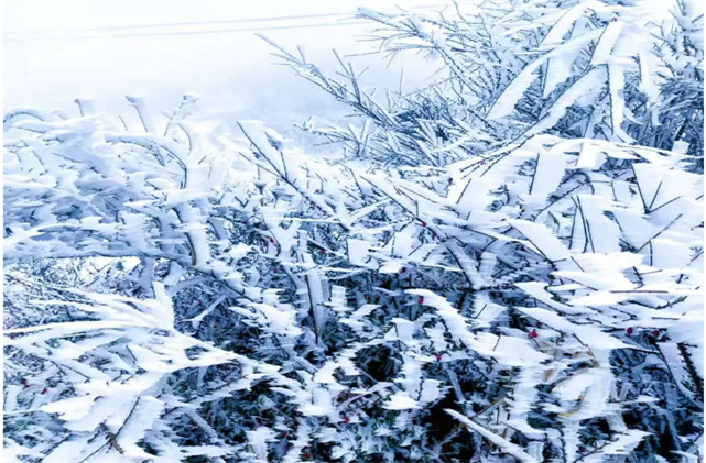 羅平山是洱源縣境內(nèi)最高的山峰之一,四季風(fēng)光秀美?!按笱呵嗨?,青松挺且直?!倍绽铮_平山上,雪花將山間染成純白色,樹(shù)葉上結(jié)滿(mǎn)了厚厚的冰晶,仿佛要把弱小的葉片壓彎,但它卻依舊保持著自己的形狀,不肯讓步半分!