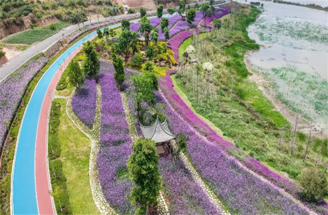 綠樹(shù)、紫花、步道