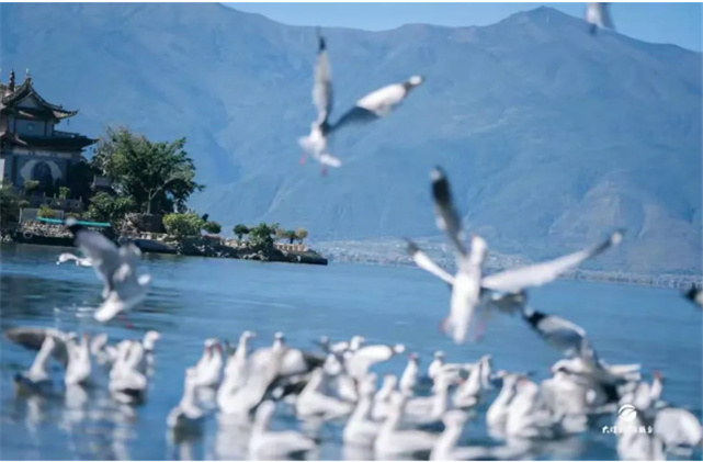 將藍色的洱海與潔白的海鷗盡收眼底