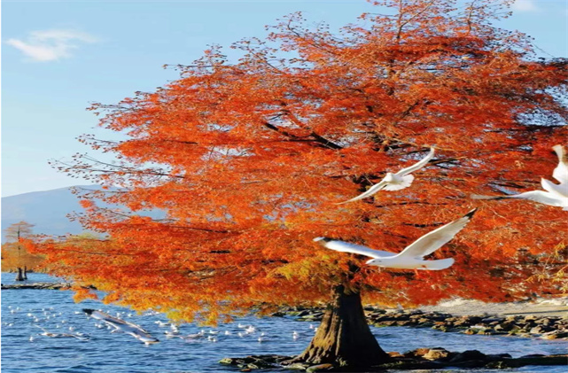 遇見洱海邊紅似火的水杉