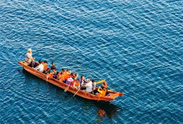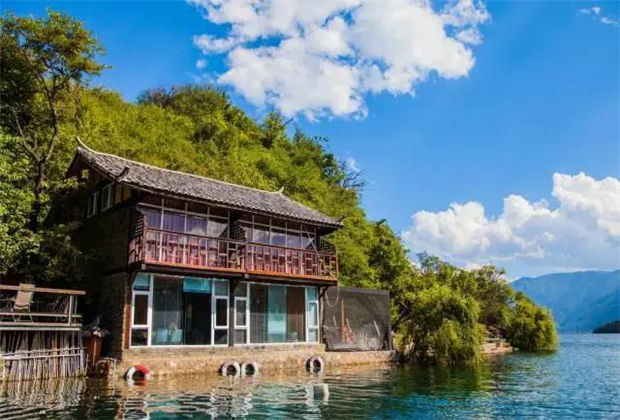 摩梭族的這種穿叫做豬槽船,撐著小船在藍(lán)天白云下,清水碧波中暢游,真的是再快活不過的一件事了。