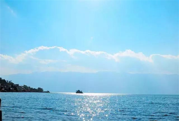 漸漸的,太陽露出了山頂,照耀在還沒有完全蘇醒的洱海水面上,一眼萬年。