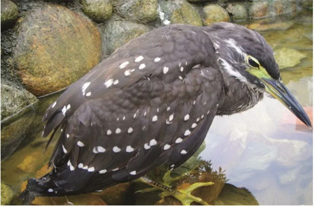 海南虎斑鳽背部長著褐灰色羽毛,胸脯和頸部有白色花點(diǎn),長長的腳干,尖尖的嘴,眼睛特別大,看上去甚至有些滑稽。上體的羽毛為暗褐色,飛羽呈石板灰色,并具有綠色的金屬光澤,翅膀上的覆羽為暗褐色,具有少許白色的斑點(diǎn)。主要棲息于亞熱帶高山密林中的山溝河谷和其他有水域的地方。海南虎斑鳽是世界上公認(rèn)的鳥類瀕危物種,因第一個(gè)模式標(biāo)本于1899 年采自海南島的五指山而得名。自從二十世紀(jì)六十年代后,人們?cè)僖矝]有發(fā)現(xiàn)這種鳥的蹤跡,因此有“海南虎斑鳽已滅絕”之說。2006年在云南南澗縣首次發(fā)現(xiàn)其身影;2007年在云南新平縣又發(fā)現(xiàn)其倩影并上了環(huán)志;2008年10月份,在云南省哀牢山國家級(jí)自然保護(hù)區(qū)海拔 2300—2400米的山坡上,工作人員也為海南虎斑鳽上了環(huán)志。