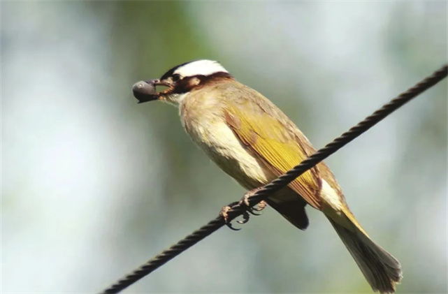 白頭鵯別名白頭翁、白頭公。白頭鵯體長約18厘米,頭黑枕白,背面黃綠,胸部大都灰褐,腹面白色,幼鳥頭灰褐色,背橄欖色,胸部淺灰褐色,腹部及尾下復(fù)羽灰白,多活動(dòng)于丘陵或平原的樹本灌叢中。白頭鵯是我國特有鳥類,主要分布在我國長江流域及其以南廣大地區(qū),以昆蟲為食,在植物保護(hù)中意義甚大。目前種群數(shù)量比較豐富,是常見的群棲性鳥,棲于林緣、灌叢、紅樹林及林園。2009年8月首次在滇池福保濕地發(fā)現(xiàn)它的身影,之前這種鳥在云南少有記錄。