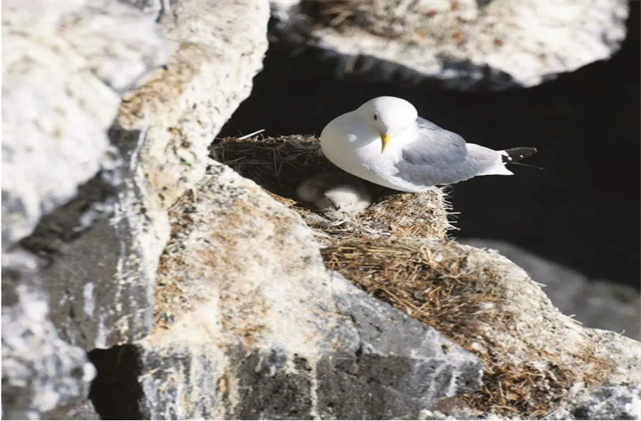 3月,幾乎所有“成年”紅嘴鷗的頭部都變成黑褐色,嘴和腳也變成紫黑色, 這就是它們的“夏羽”,是繁殖期到來的標(biāo)志。此時(shí),無論雌雄紅嘴鷗都在換羽,而最明顯的標(biāo)志就是頭部換上黑色的羽毛。有人把紅嘴鷗的換羽比喻為“它們披上了黑色的婚紗。”