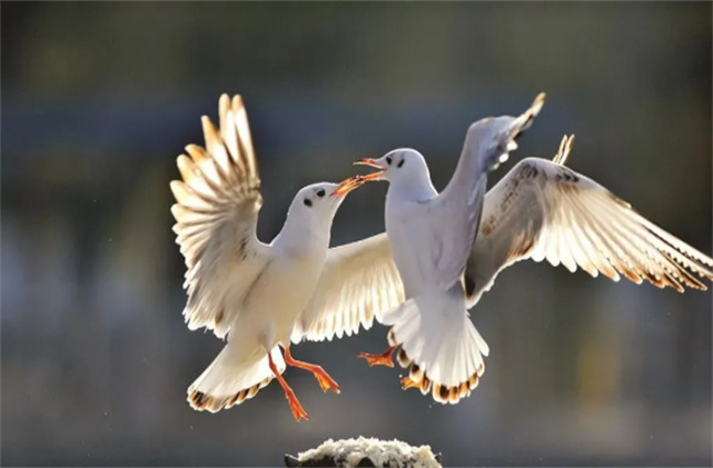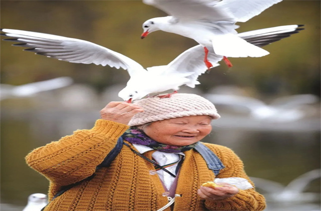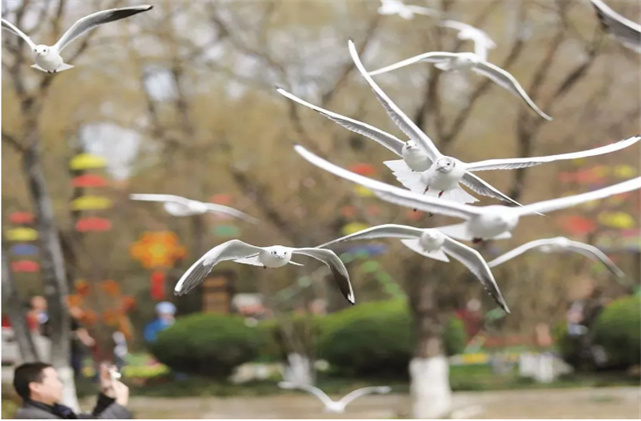 嗷嗚,嗷嗚”的叫聲對(duì)于它們來說也是一種安慰。  紅嘴鷗與大多數(shù)鳥類一樣,對(duì)陌生聲音很敏感。只要它感覺不安全,就會(huì)立即飛走。趙雪冰說:“鷗群如果受到巨大的驚嚇,如大聲吼叫、哄趕、燃放炮竹,就會(huì)紛紛起飛逃離,在水面上空或屋頂周圍飛舞。但昆明的紅嘴鷗已經(jīng)習(xí)慣了城區(qū)的噪音、來來往往的車流、人聲鼎沸的人群?!?這樣看來,紅嘴鷗是通人性的,確切地說, 它們知道這里的人們對(duì)它是友好的。