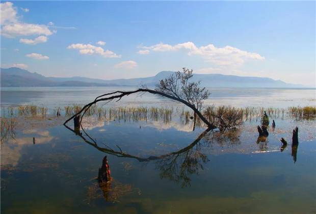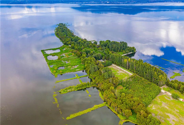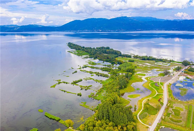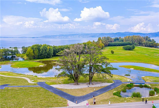從喜洲出發(fā),穿過(guò)蜿蜒的村道,10分鐘車程就可以到達(dá)洱海邊,在這里有個(gè)因形似舌頭而得名的濕地公園。