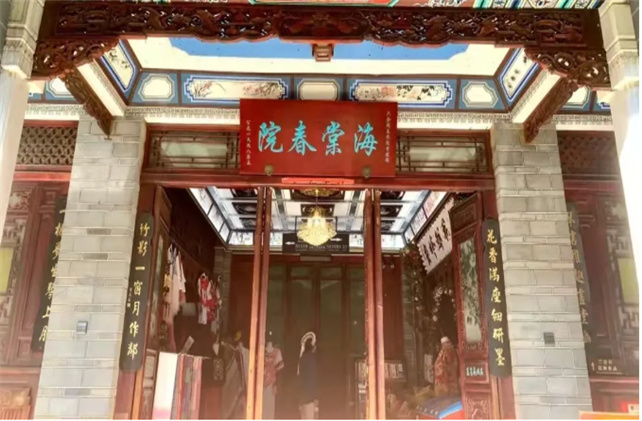 海棠春院,集中表現(xiàn)白族建筑的戲臺建筑藝術(shù),院內(nèi)有水上戲臺,作為觀看歌舞表演的地方,集大理白族民歌和白族調(diào)的音樂劇場于一體,在這里你可以一邊欣賞歌舞表演,一邊品白族三道茶。