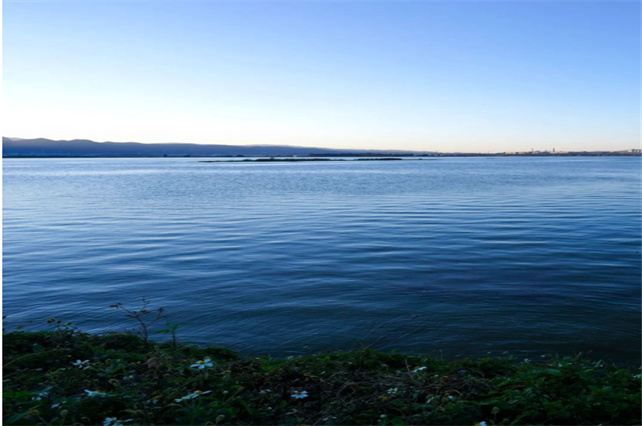 大屯海碧波蕩漾青山如黛,水天一色宛若一幅畫卷