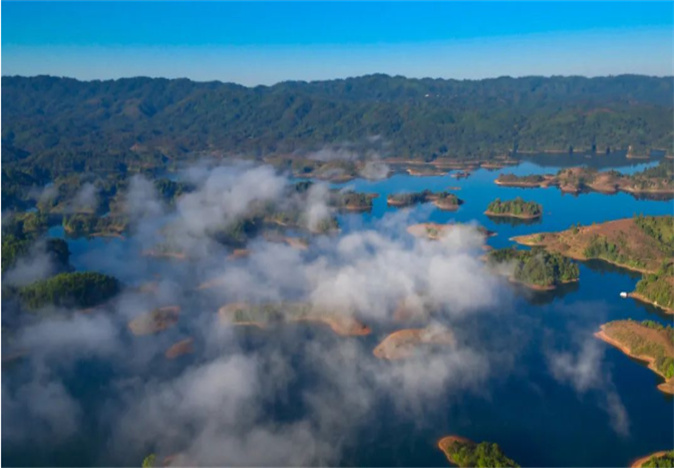 薄霧中美麗的凱邦亞湖